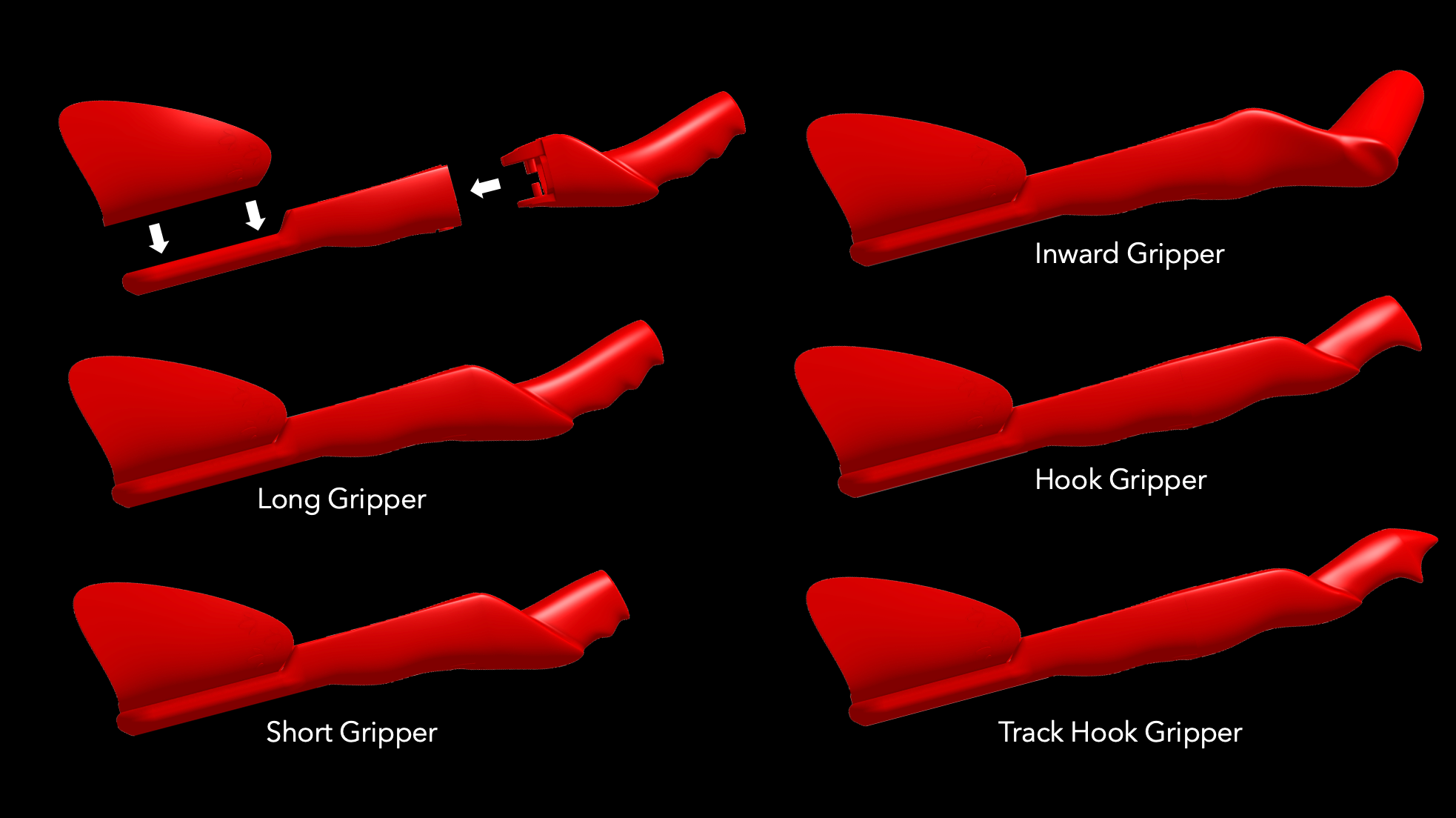 Ascalon Elite extension shafts are made in titanium, using Electron Beam Melting (EBM) to provide a stiff, fatigue resistant and lightweight part. End grippers are made of SLS nylon.